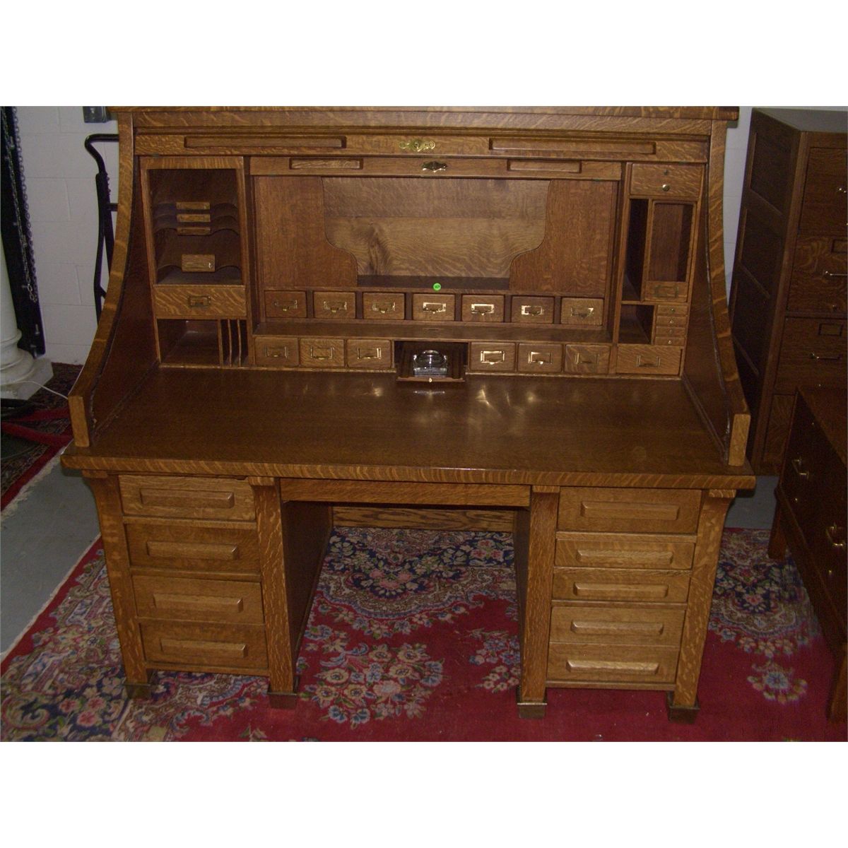 Sold Oak Quarter Sawn 1915 Antique Craftsman Roll Top Desk
